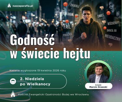 Godność w świecie hejtu – zaproszenie na nabożeństwo 19.04 i ogłoszenia