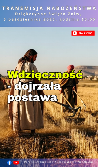Wdzięczność: dojrzała postawa – zaproszenie na nabożeństwo 05.10 i ogłoszenia