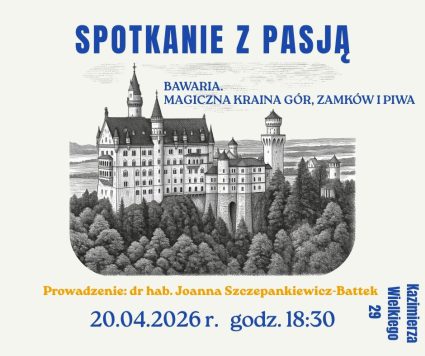 W poniedziałek 20 kwietnia o godz. 18:30 odbędzie się kolejne spotkanie z pasją! O Bawarii opowie dr hab. Joanna Szczepankiewicz-Battek. Serdecznie zapraszamy!WIĘCEJ
