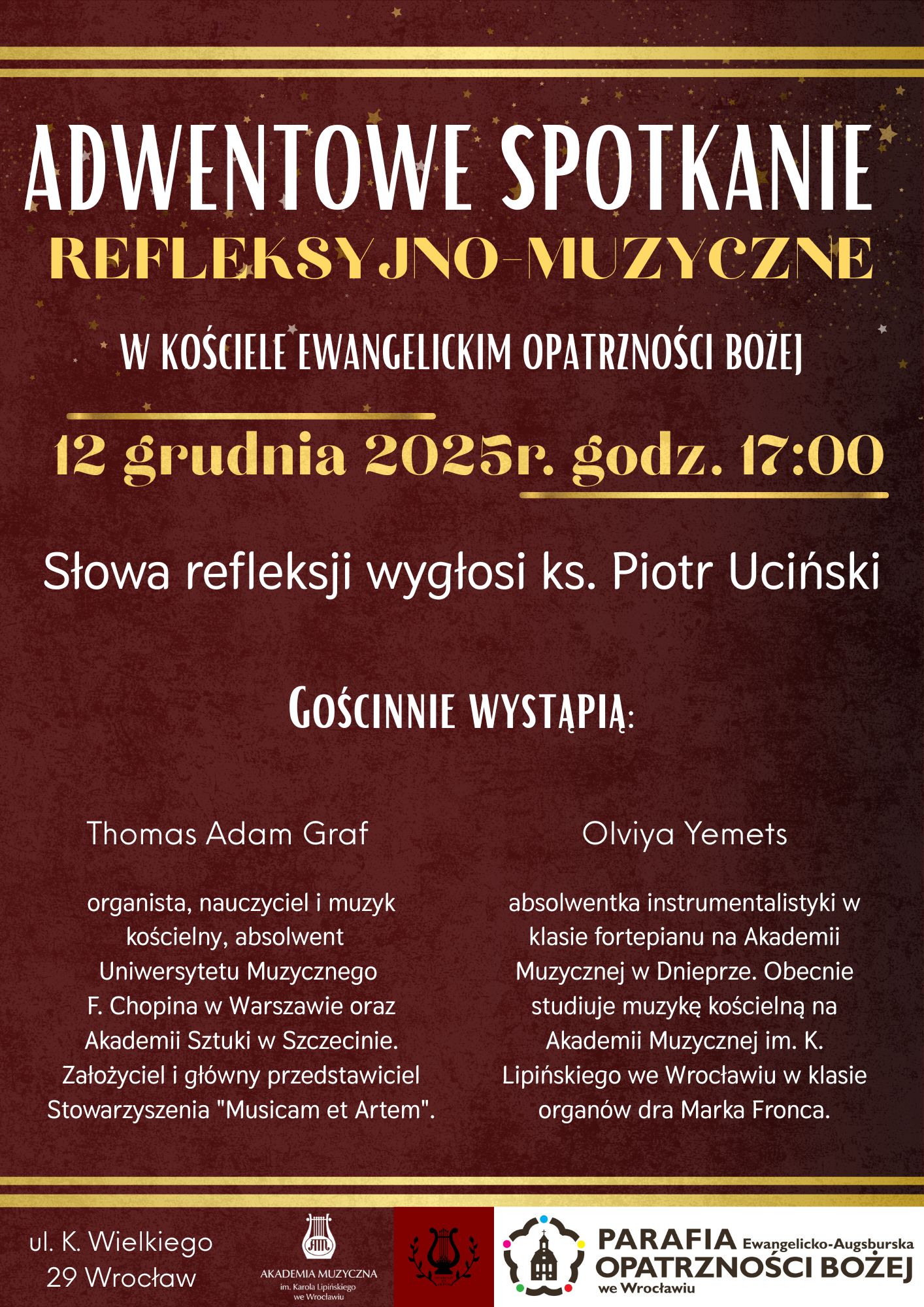 W tym roku zapraszamy na szczególne adwentowe spotkania, będące połączeniem muzyki, duchowej refleksji oraz czytania fragmentów Pisma Świętego. To przestrzeń, by na moment zwolnić, wsłuchać się w Słowo i wprowadzić w swoje życie więcej pokoju.