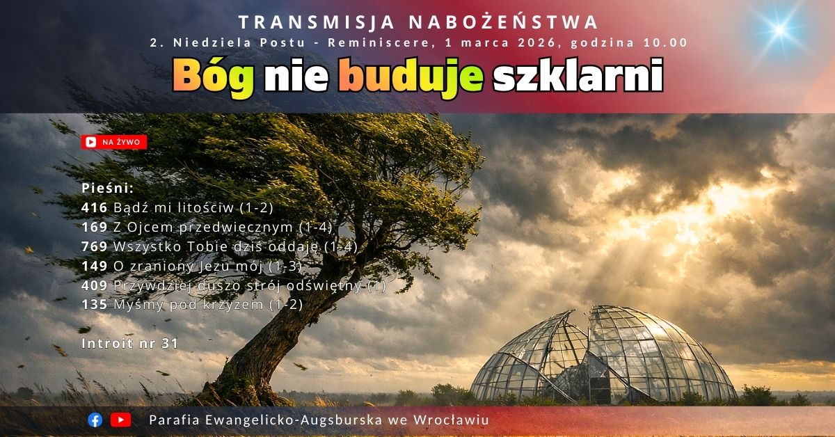 📍 Kościół Opatrzności Bożej, ul. Kazimierza Wielkiego 29 we Wrocławiu. Po nabożeństwie zapraszamy wszystkich serdecznie na agapę w sali parafialnej.