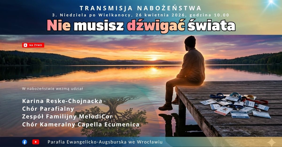Nie musisz dźwigać świata – zaproszenie na nabożeństwo 26.04 i ogłoszenia