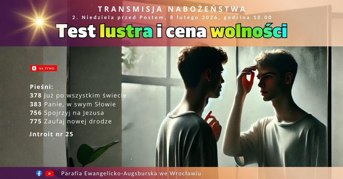 ⛪ Nabożeństwo niedzielne. Serdecznie zapraszamy na nabożeństwo w przyszłą niedzielę, 15 lutego, o godzinie 10:00. Nabożeństwo będzie połączone ze spowiedzią i Komunią Świętą.